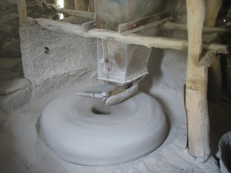 Traditional technology for grinding grain using water power.
